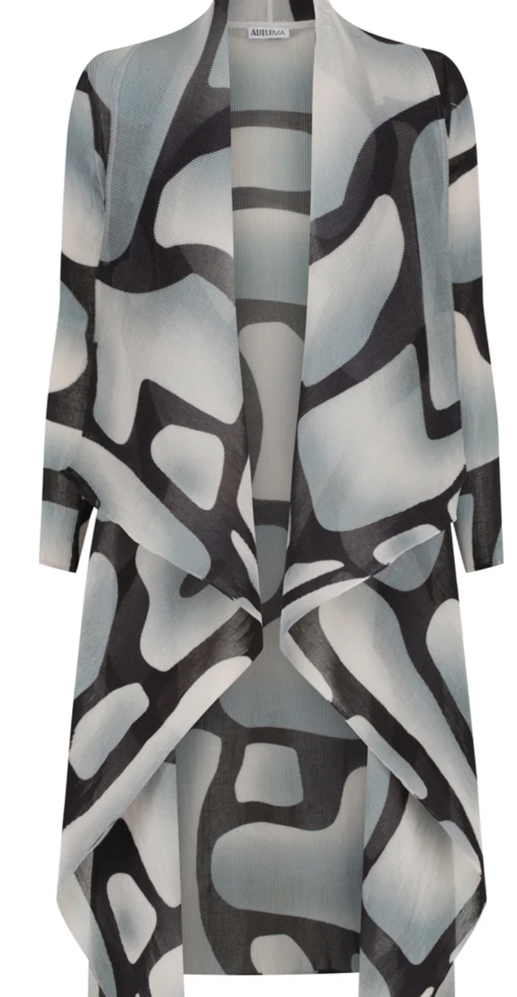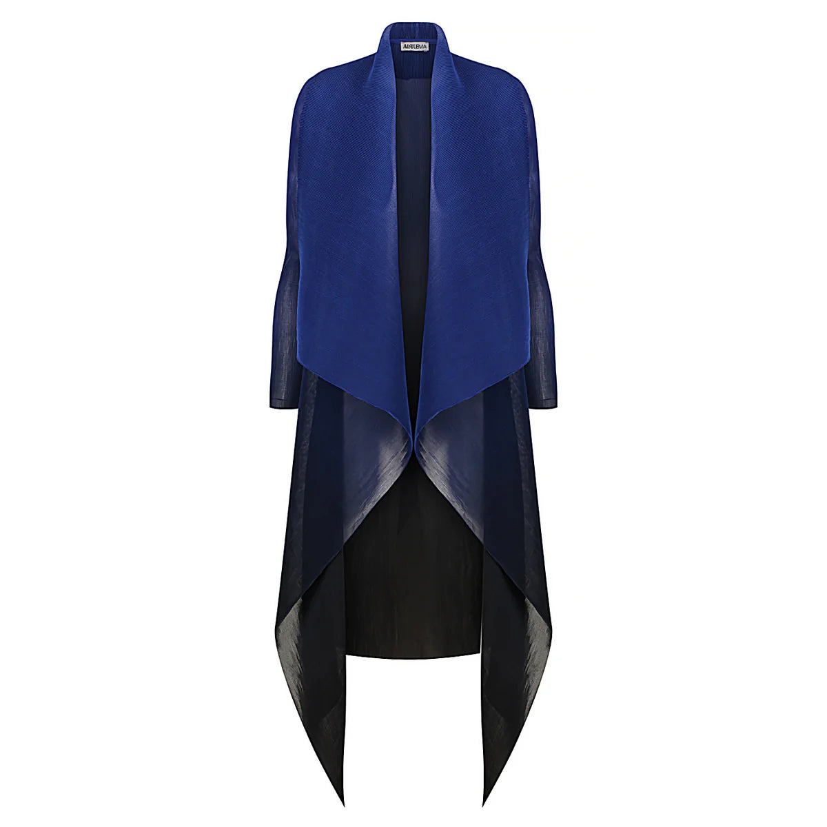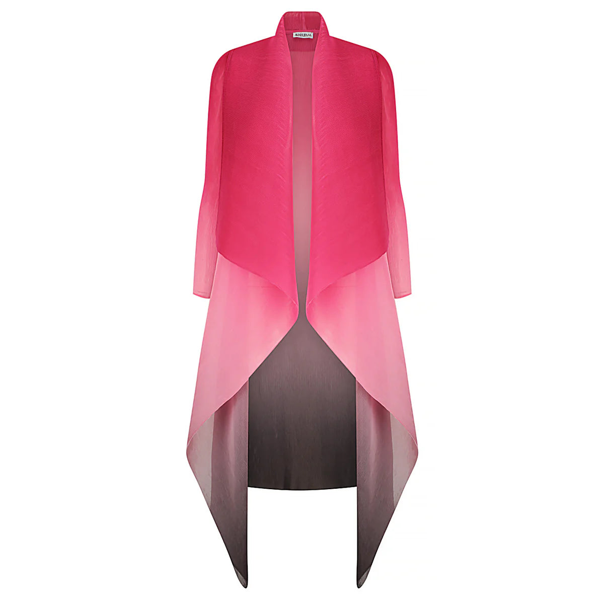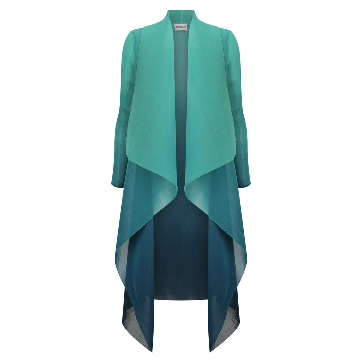 The Collare Coat is reminiscent of a waterfall. The beautiful pleated folds created within the chiffon material make it an easy to wear Alquema piece and is perfectly paired with the Long Estrella Dress.