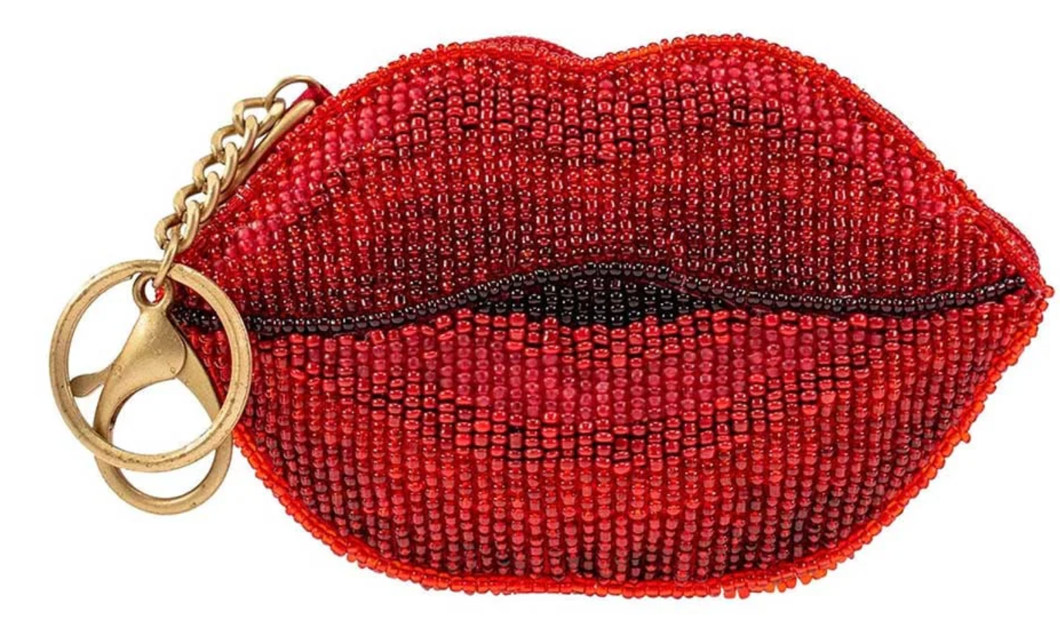 Your look will be on everyone’s lips with this bold statement coin purse. Hand-beaded with rich red colors, these lips are sealed to hold your most important secrets. Keep your vital items with you, whether using the hook to attach to your purse or on its own.
