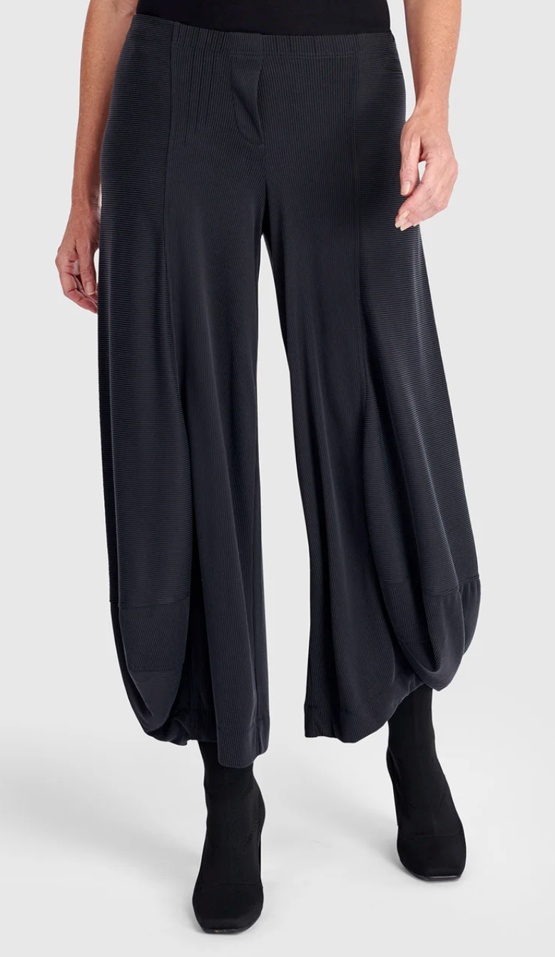 From Alembika's Essential collection, this minimalist Punto pant in ribbed cupro knit features a fluid drape and sculpted hem pouf. A streamlined silhouette without pockets creates a sleek profile that pairs effortlessly across seasons.