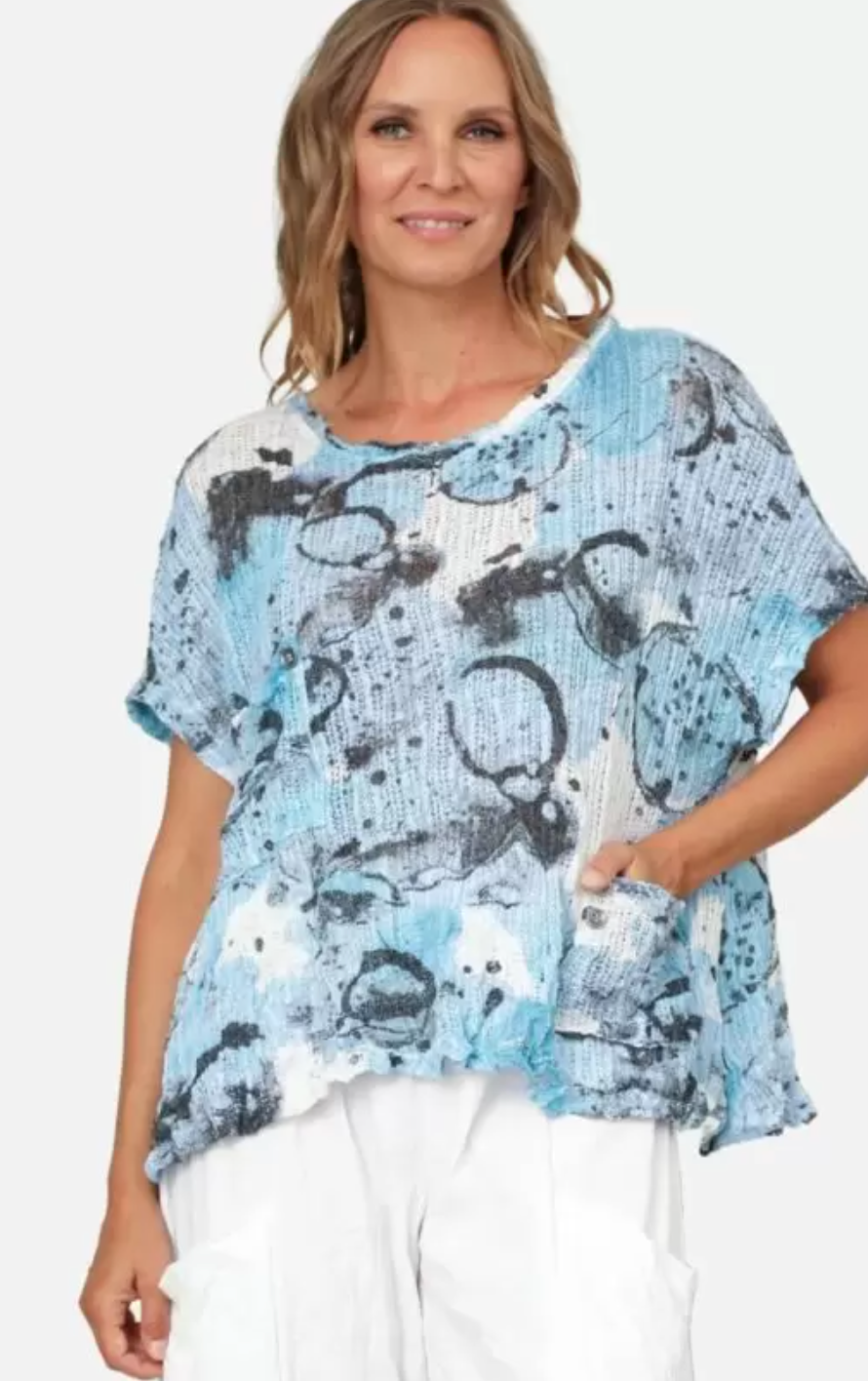 From Chalet's Breezy Knit collection, the Sloane is knit in a soft poly/rayon blend with an airy open weave and an easy loose fit. Full of textural appeal, it has a round neckline, dropped shoulders and elbow length sleeves. A wavy seam runs down the center front, top entry front pockets complete the easygoing look.