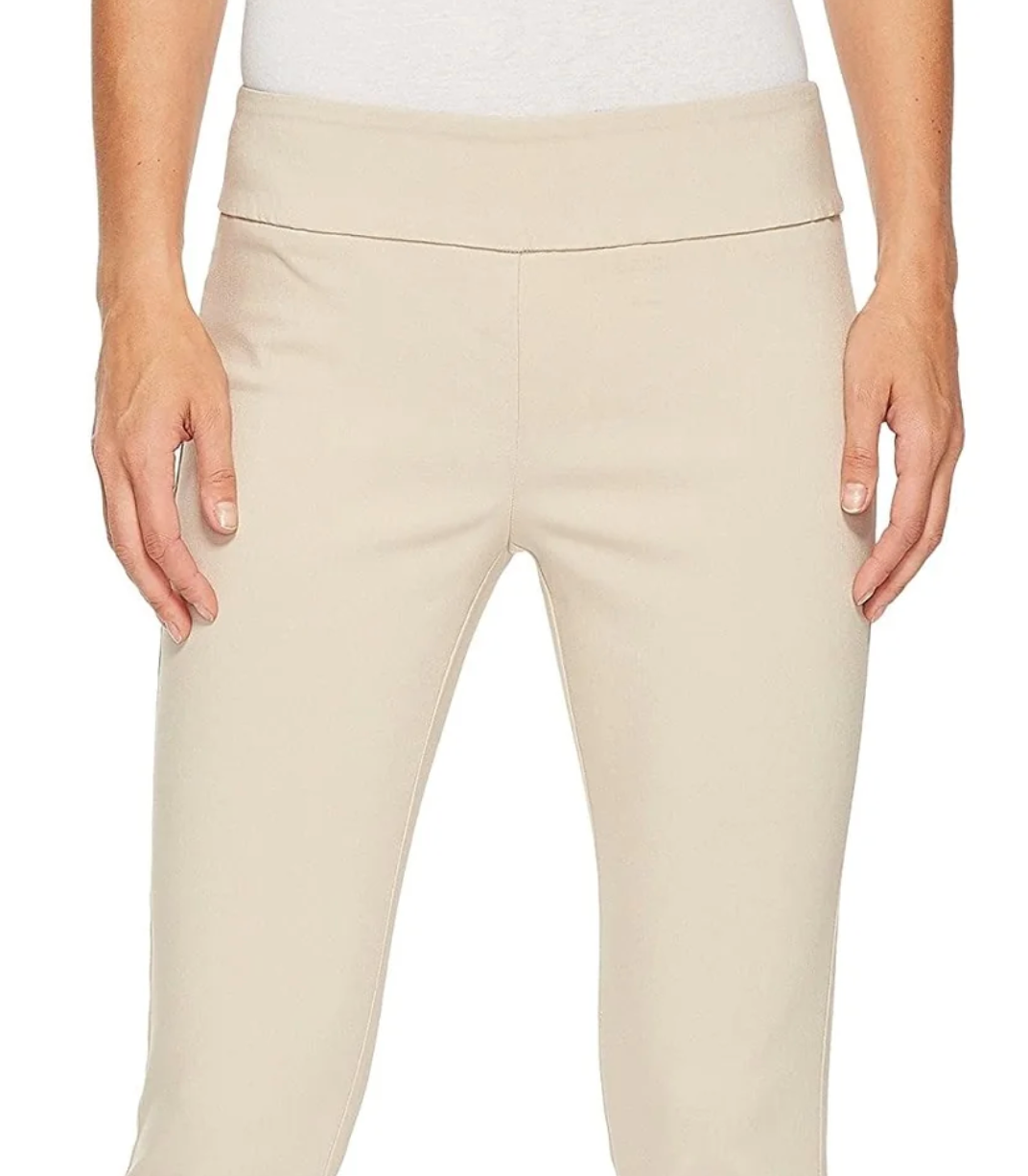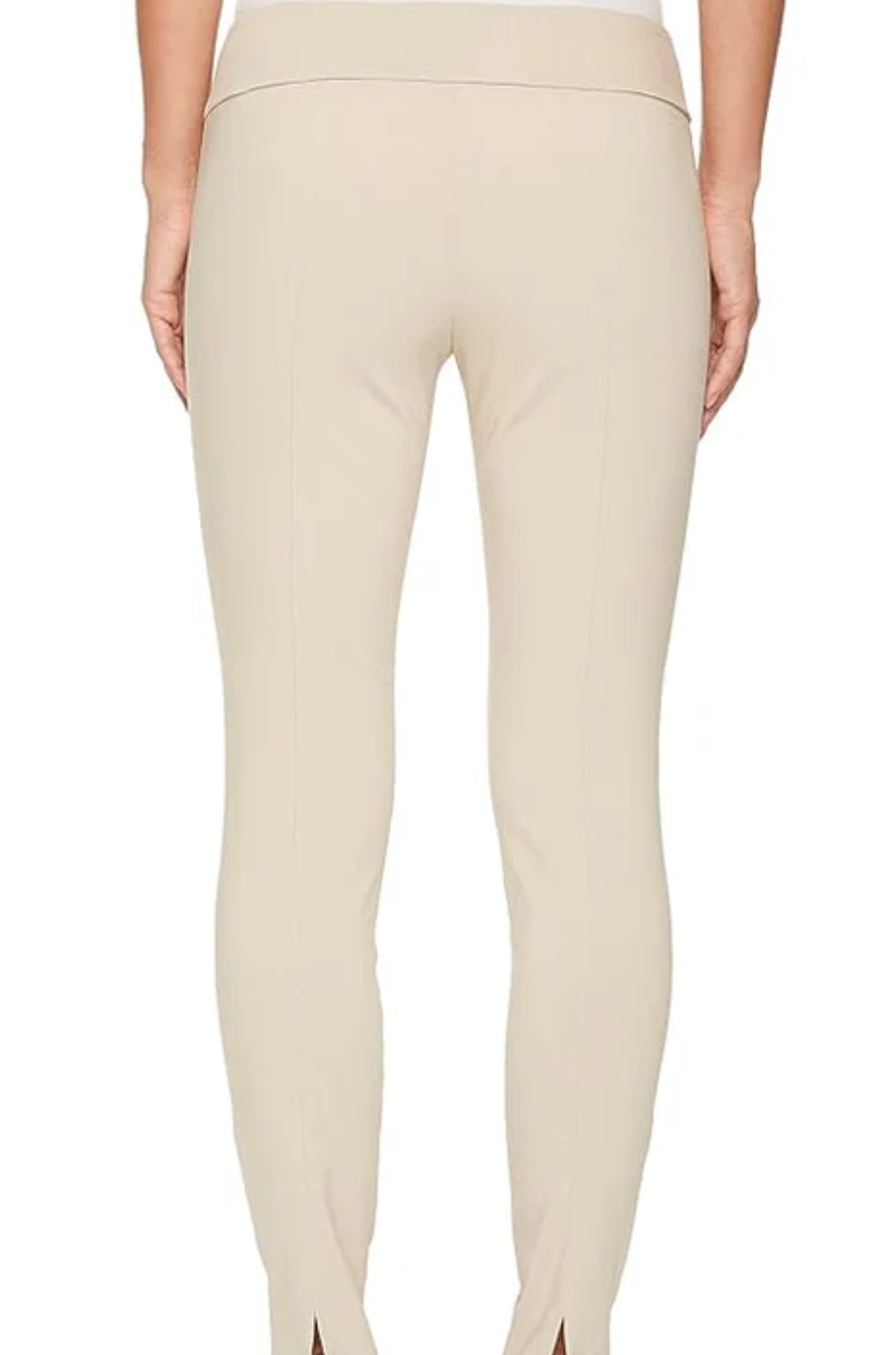 Elliot Lauren Control Stretch Pull-On Ankle Pants with Back Slit Detail. Pants hit at an ankle length with a slim fitting stretch composition.