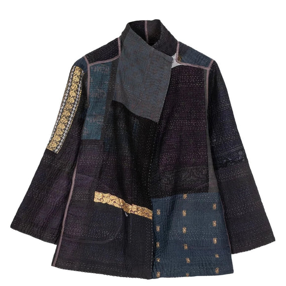 JEWEL WOVEN WITH VERTICAL PATCH KANTHA KAFTAN JACKET SHORT