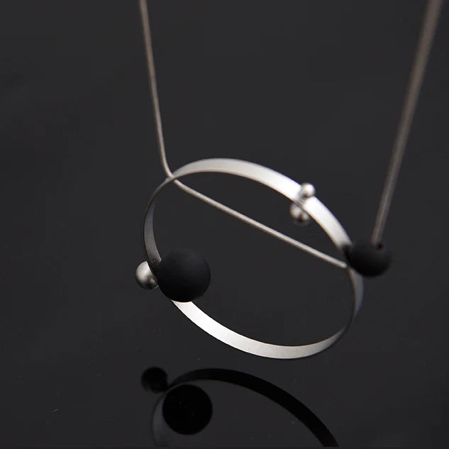 Named after the sun, our designer was inspired by planets and constellations when designing this short necklace. It hangs from a delicate link chain and the large ring pendant lies flat against the chest just below the collar bones. Available in two stunning two-tone options, the playful combination of black and metal is what really sets this masterful piece apart!