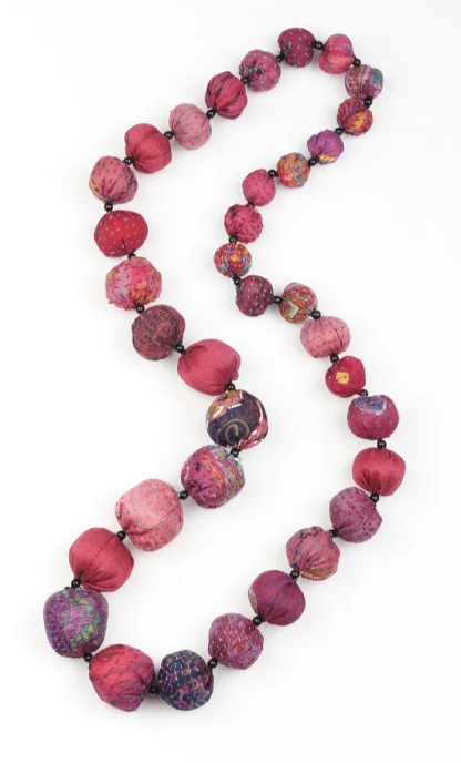 VINTAGE SILK KANTHA NUTS LONG NECKLACE