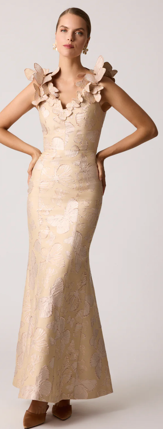 Metallic Jaquard Butterfly Pattern Trim Gown