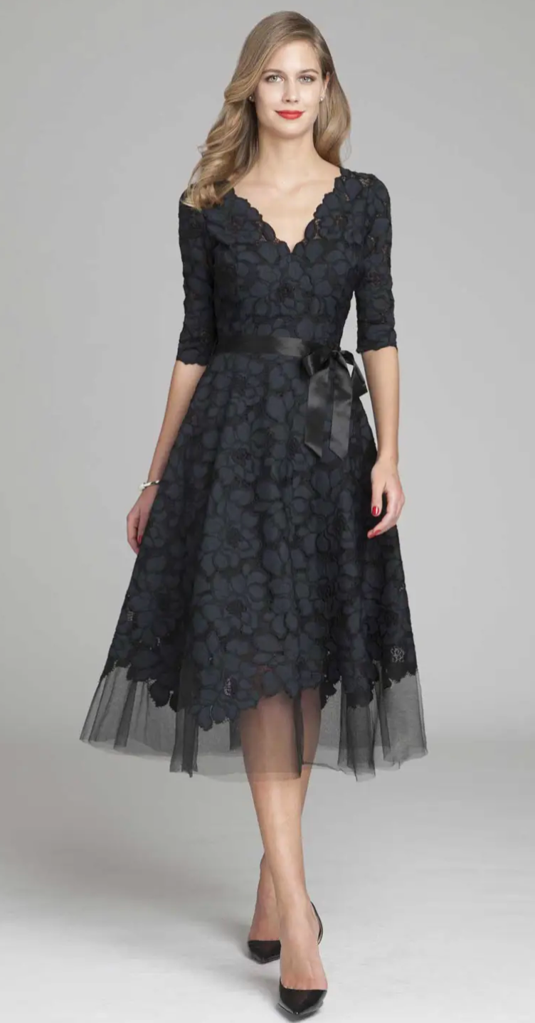 The party dress of the season! From a cocktail party to evening wedding and charity event this knee length dress will flatter women of all ages and sizes.