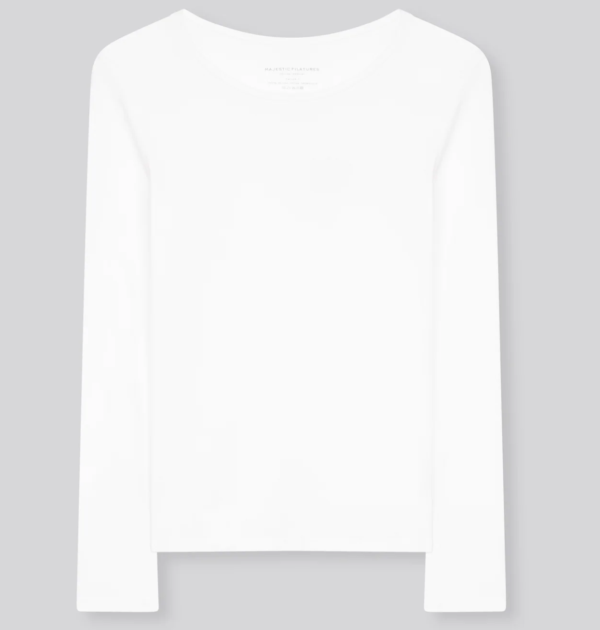 White t-shirt with a round neck and long sleeves, made from Organic Cotton with a soft feel and impeccable fit for an elegant and comfortable essential.