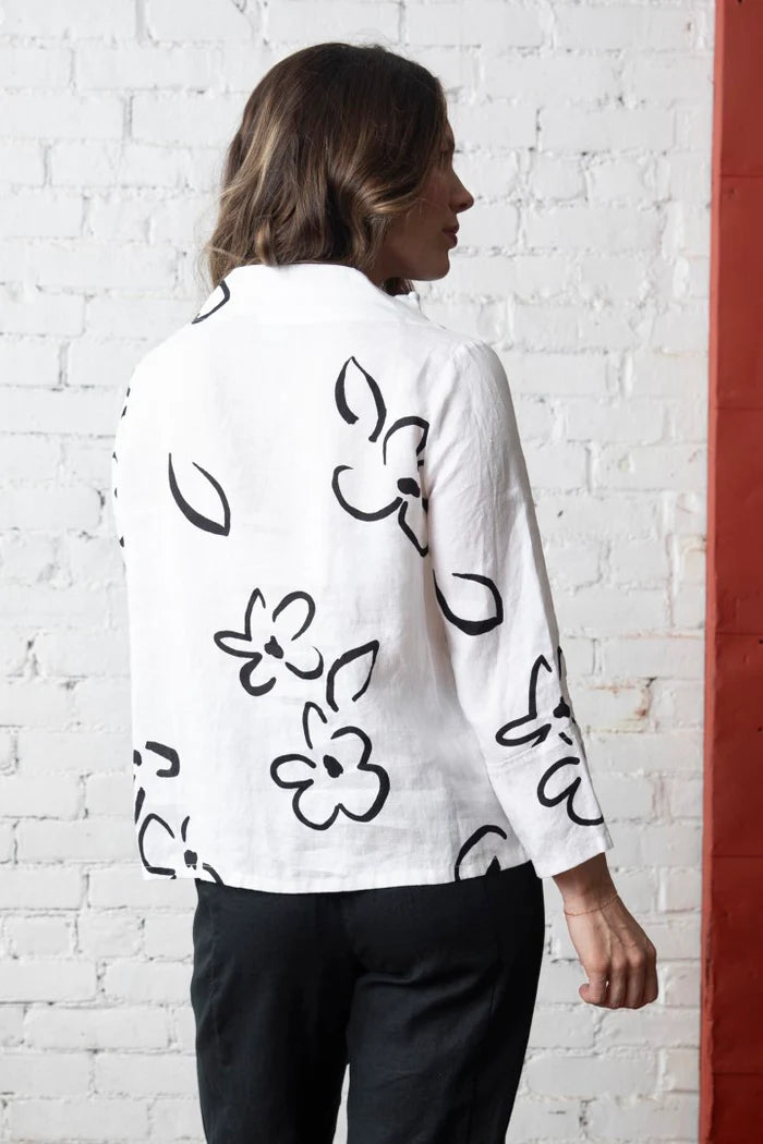 Exclusive Soho print adorns our linen occasion jacket. A modern shape that is easy to wear dressed up or more casually.